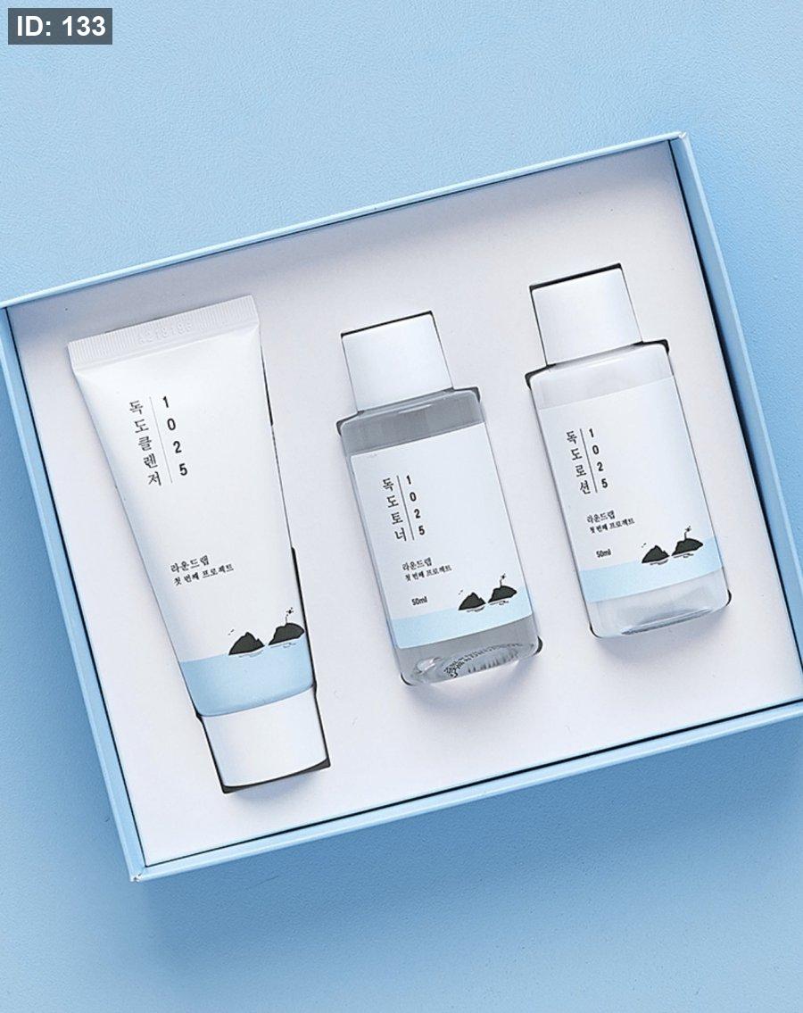 - دلّلي بشرتك مع مجموعة العناية الكورية المصغّرة من Round Lab 1025 Dokdo — ثلاث خطوات بسيطة تمنحك روتينًا متكاملًا يغمر بشرتك بالترطيب والنقاء.
