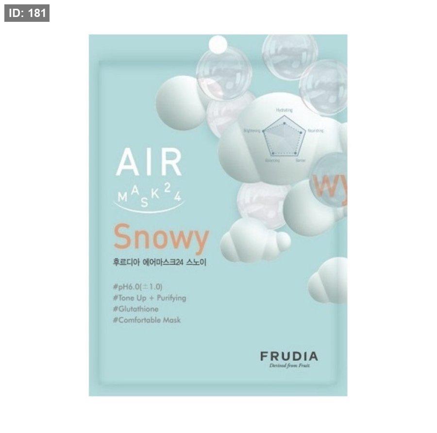 - دلّلي بشرتك بلحظة تألق متجددة مع AIR Mask 24 Snowy من فروديا — ماسك ورقي فاخر ينساب على جلدك كنسيم صباحي، يحتوي على نياسيناميد وغلوتاثيون لتوحيد لون البشرة وتقليل التصبغات والبقع الداكنة، مما يمنحها إشراقة تشبه نُقْل الثلج.