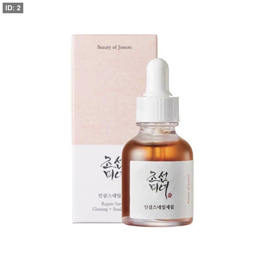- سيروم الإصلاح من Beauty of Joseon بخلاصة الجينسنغ وميوسين الحلزون يمنح بشرتك مظهراً صحياً ومشدوداً. تركيبة متطورة تعيد الحيوية للبشرة المرهقة، وتعمل على تجديد الخلايا، تقليل التجاعيد، وتحسين المرونة مع ترطيب عميق يدوم طوال اليوم.