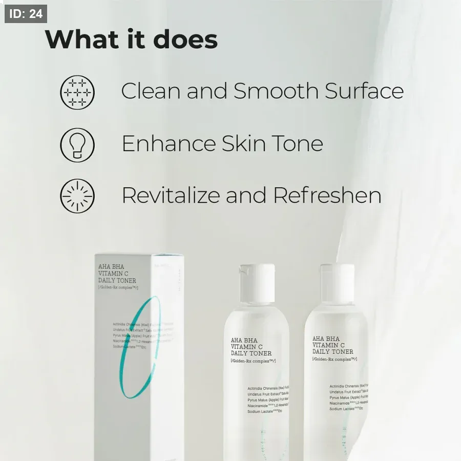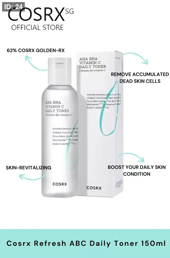 - تونر AHA BHA Vitamin C Daily Toner من COSRX هو تركيبة متكاملة لتجديد البشرة ومنحها إشراقة صحية يومًا بعد يوم.