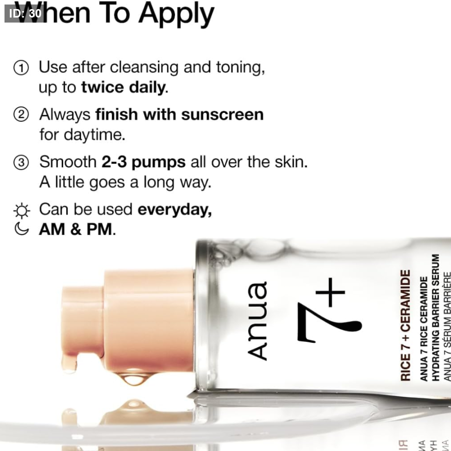- سيروم Anua Rice 7+ Niacinamide Serum هو تركيبة مغذية ومضيئة تعمل على تفتيح البشرة وتعزيز ترطيبها الطبيعي.