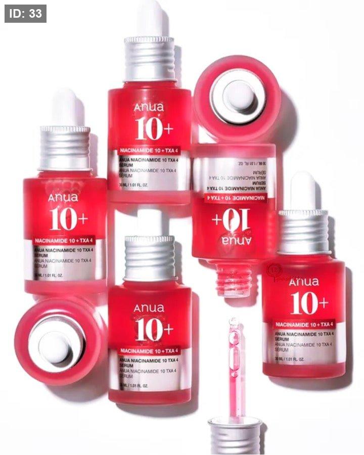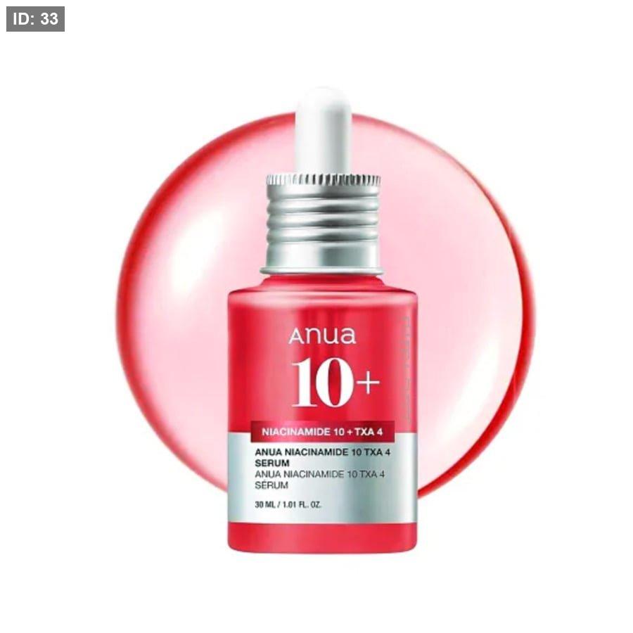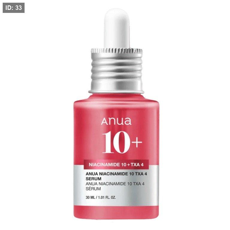 - سيروم Anua Niacinamide 10 + TXA 4 هو تركيبة فعالة مصممة خصيصًا لتفتيح البشرة وتقليل البقع الداكنة والتصبغات بفعالية عالية دون تهيّج.