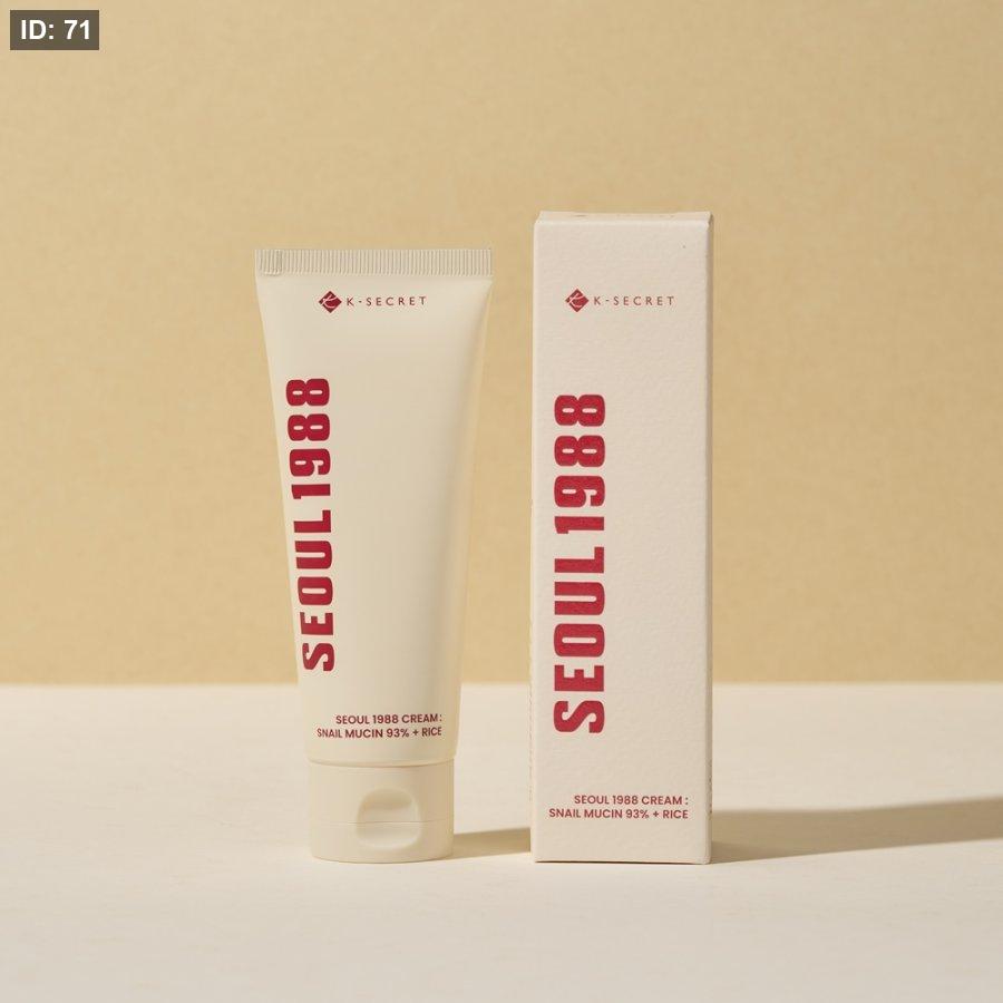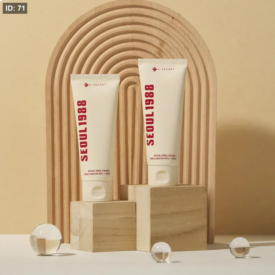 - كريم K-Secret Seoul 1988 Snail Mucin + Rice هو تركيبة فاخرة مصممة لترميم البشرة المتعبة واستعادة حيويتها من العمق. يحتوي على مخاط الحلزون بنسبة 97٪ المعروف بقدرته العالية على تجديد الخلايا وإصلاح الأنسجة التالفة، مما يساعد في تقليل آثار الحبوب، التصبغات، والخطوط الدقيقة بفعالية. كما يعمل على تهدئة البشرة الحساسة وتعزيز مرونتها بفضل خصائصه المرمّمة والمغذية.